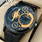 Time Worth Dual Time Stylish Grey Leather Strap Watch